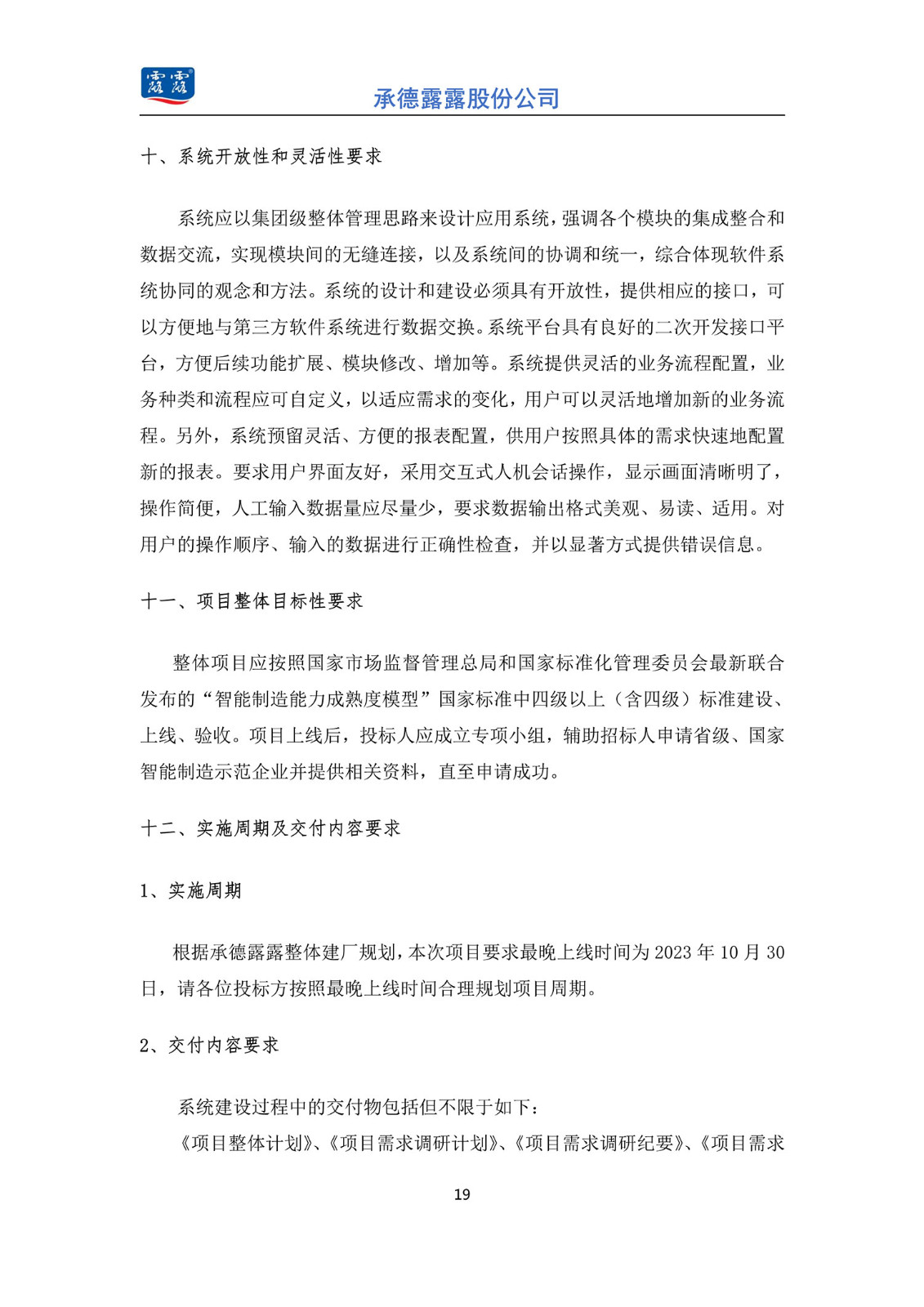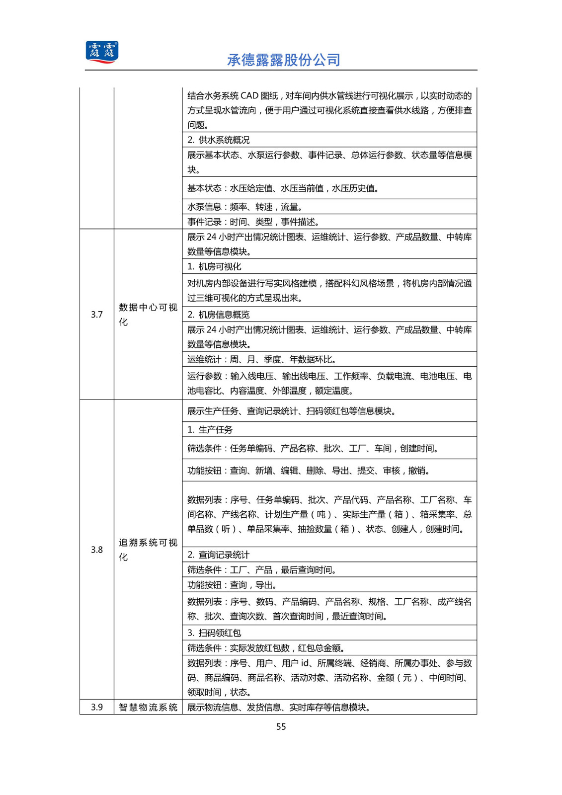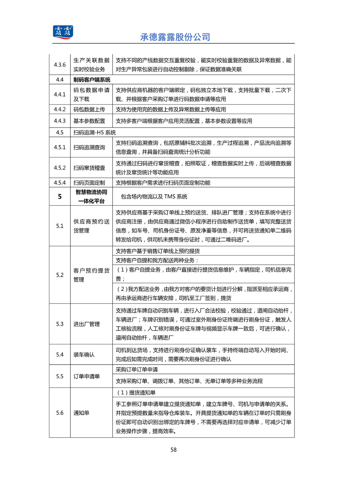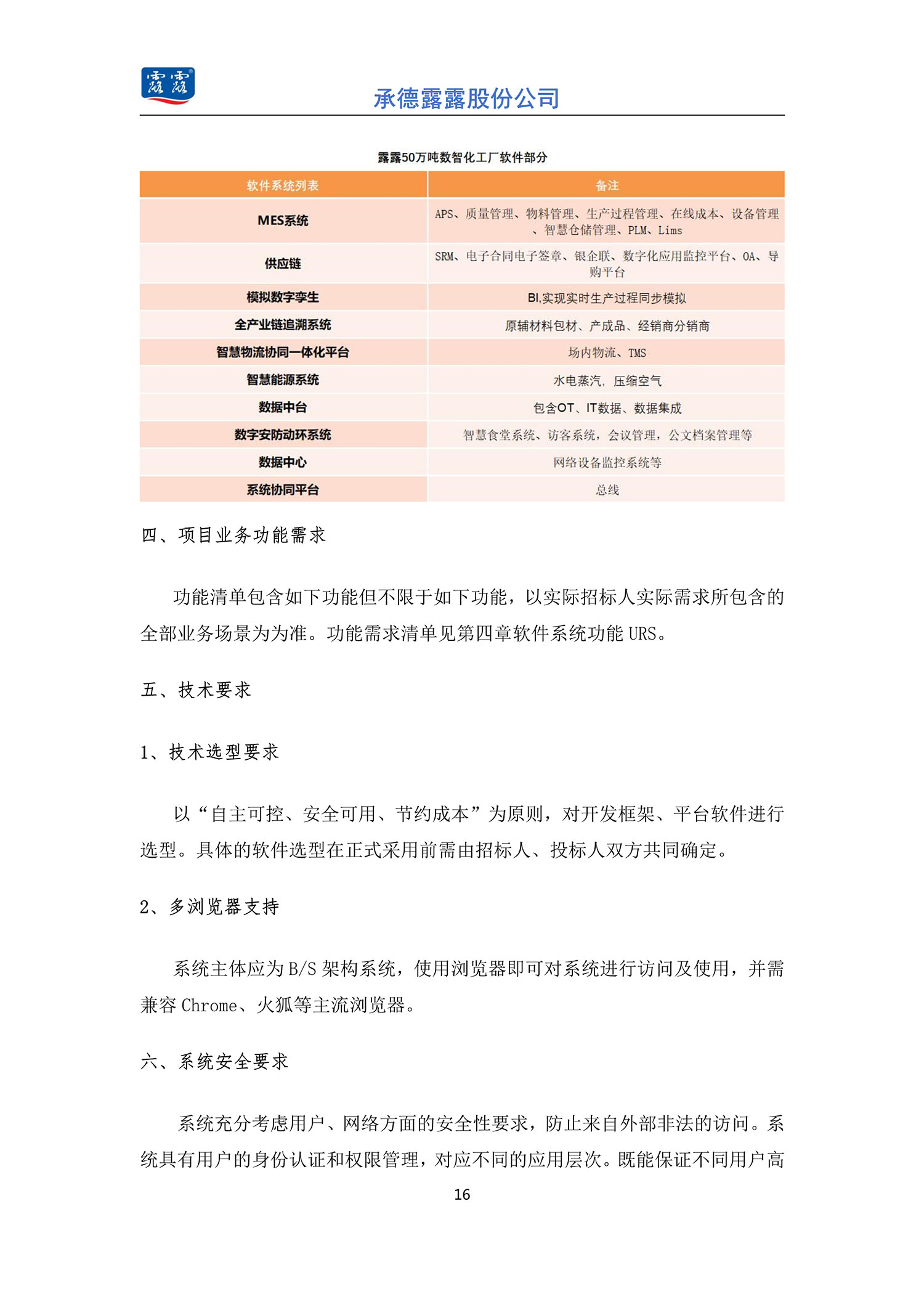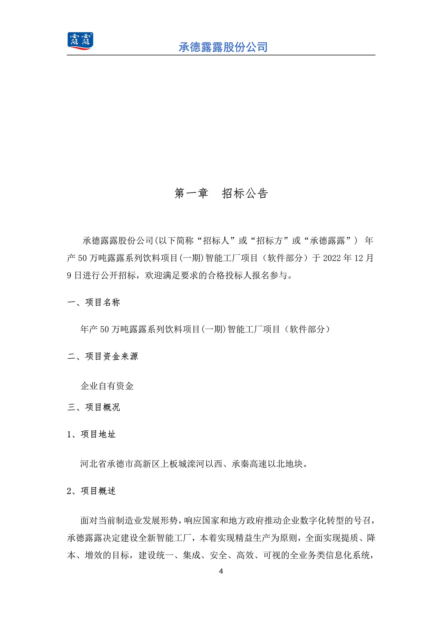 BG视讯股份公司年产50万吨露露系列饮料项目(一期)智能工厂项目(软件部分)招标文件