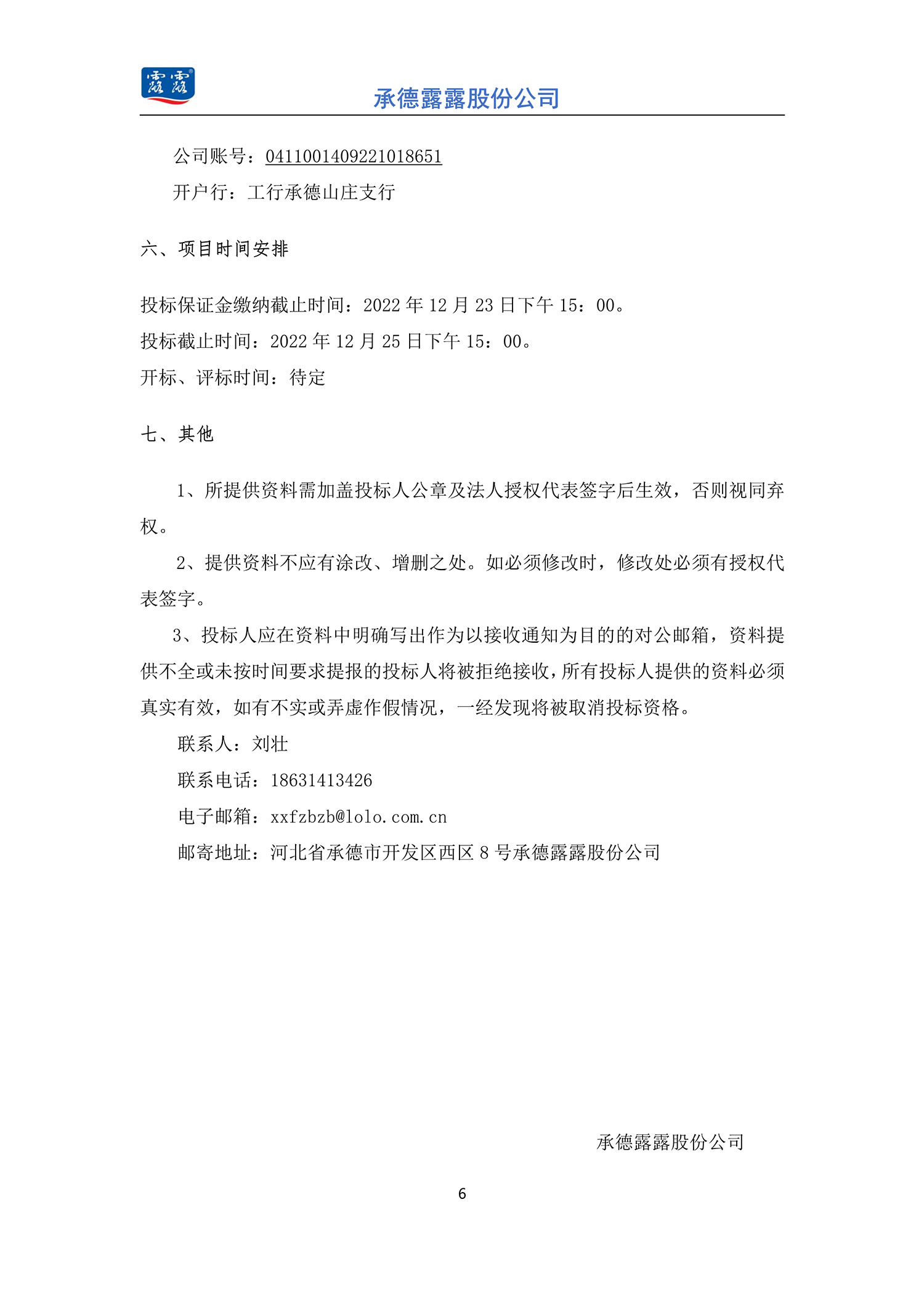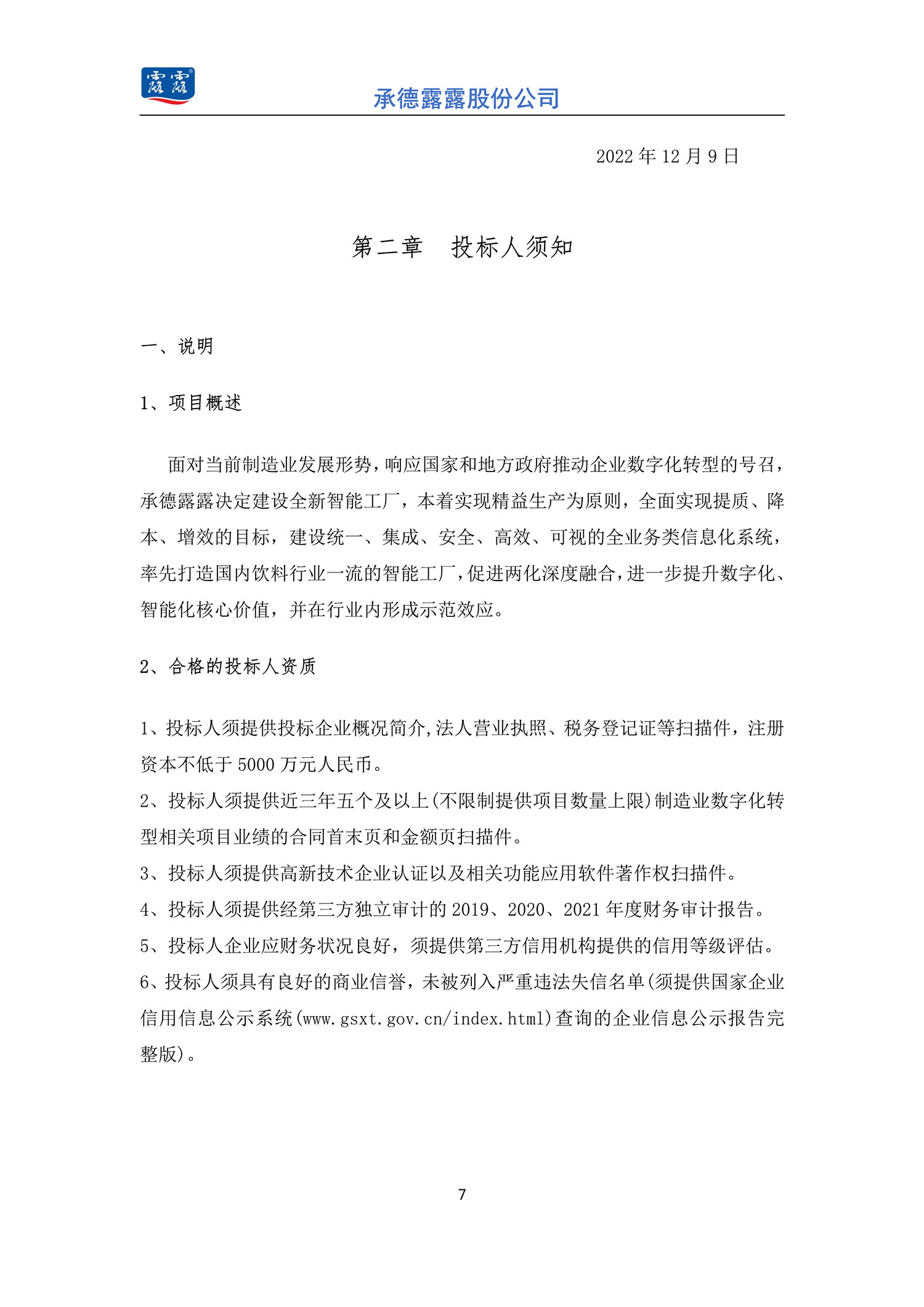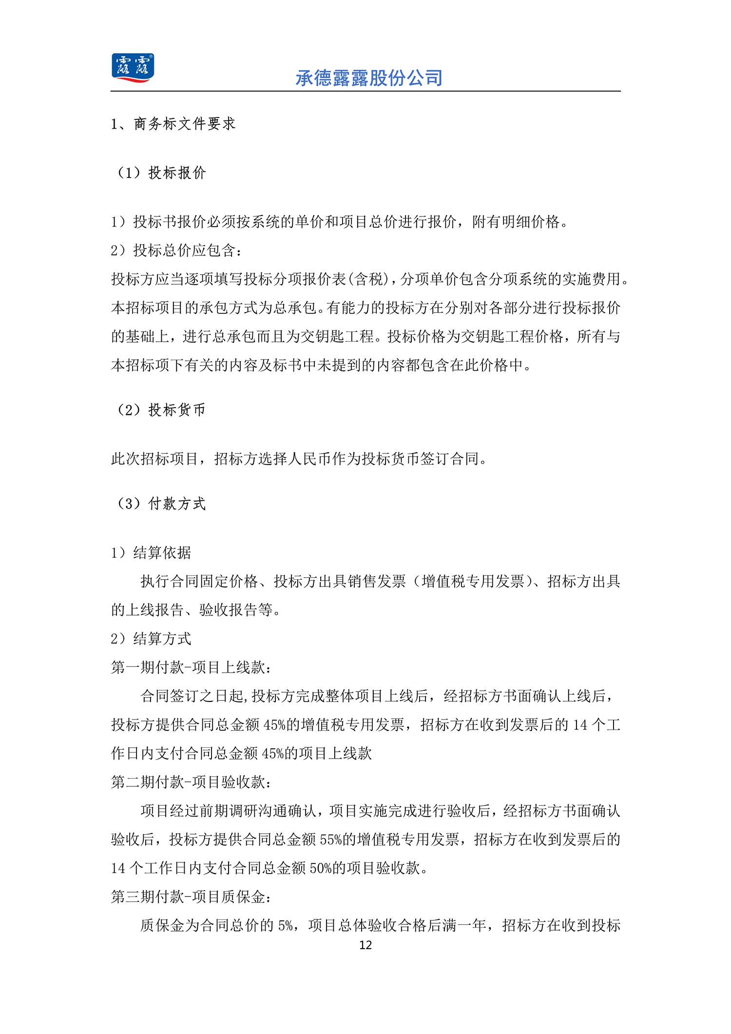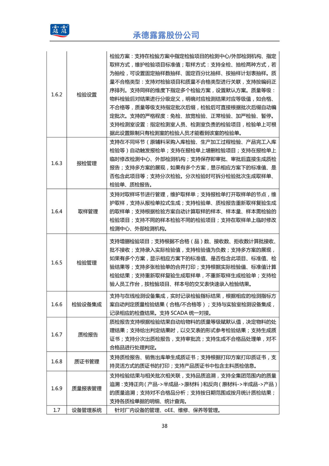BG视讯股份公司年产50万吨露露系列饮料项目(一期)智能工厂项目(软件部分)招标文件