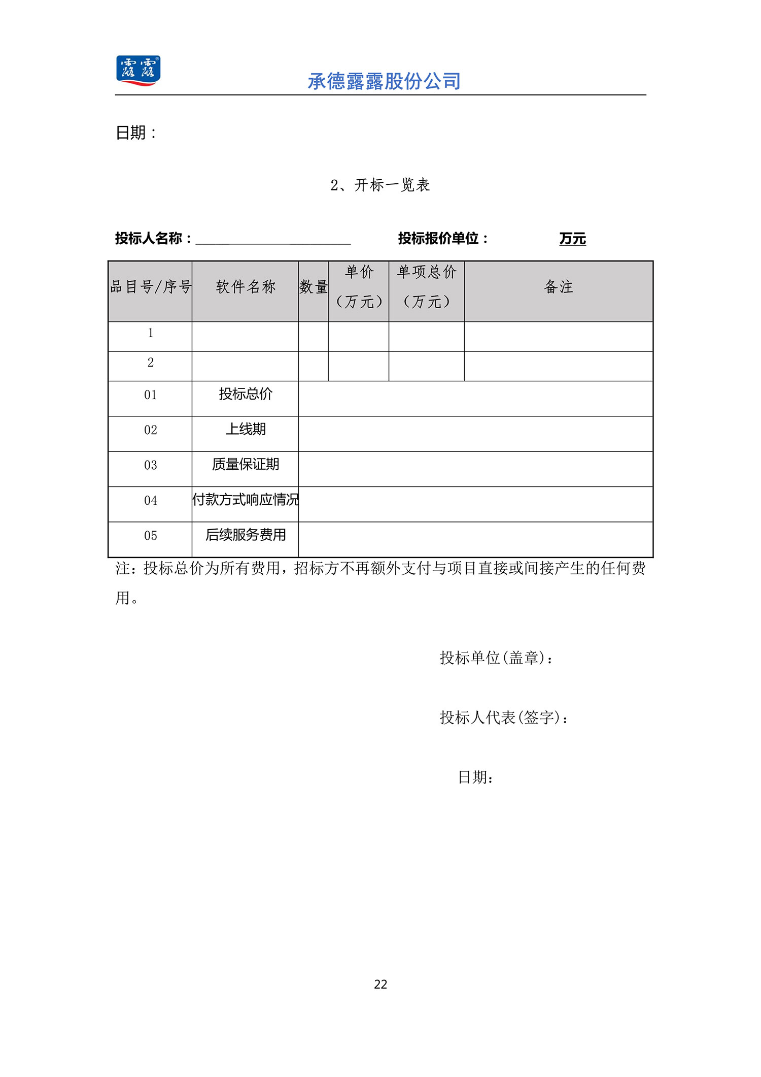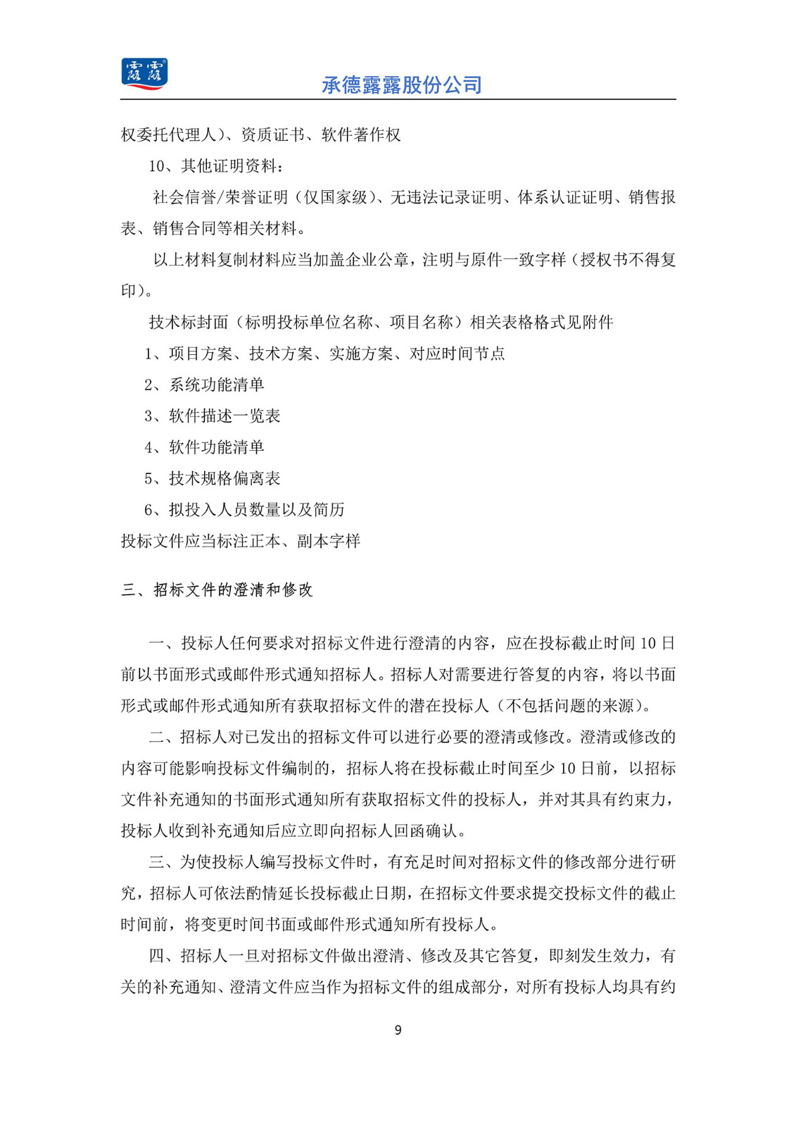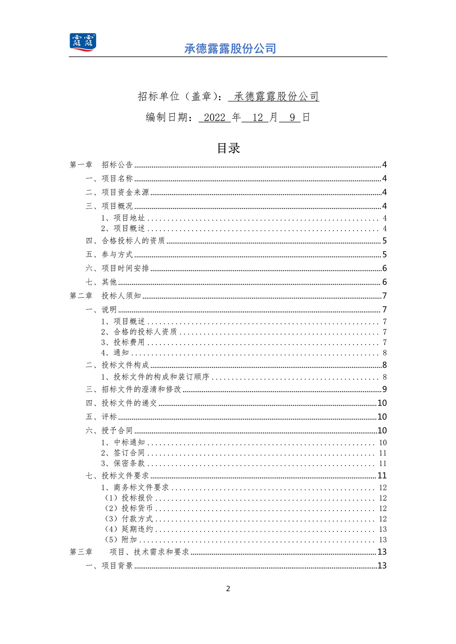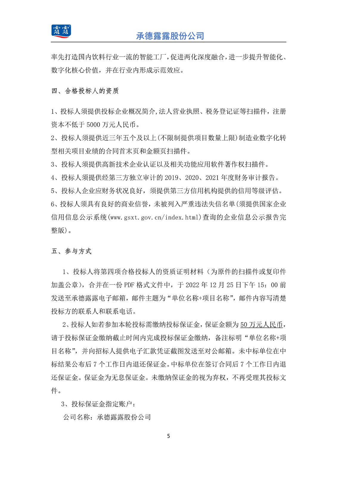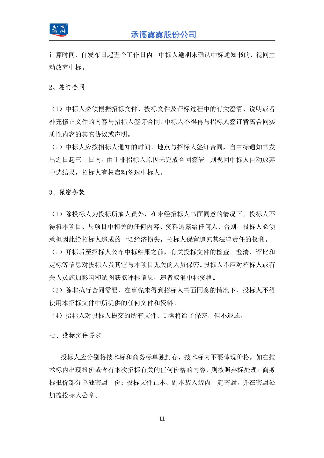 BG视讯股份公司年产50万吨露露系列饮料项目(一期)智能工厂项目(软件部分)招标文件