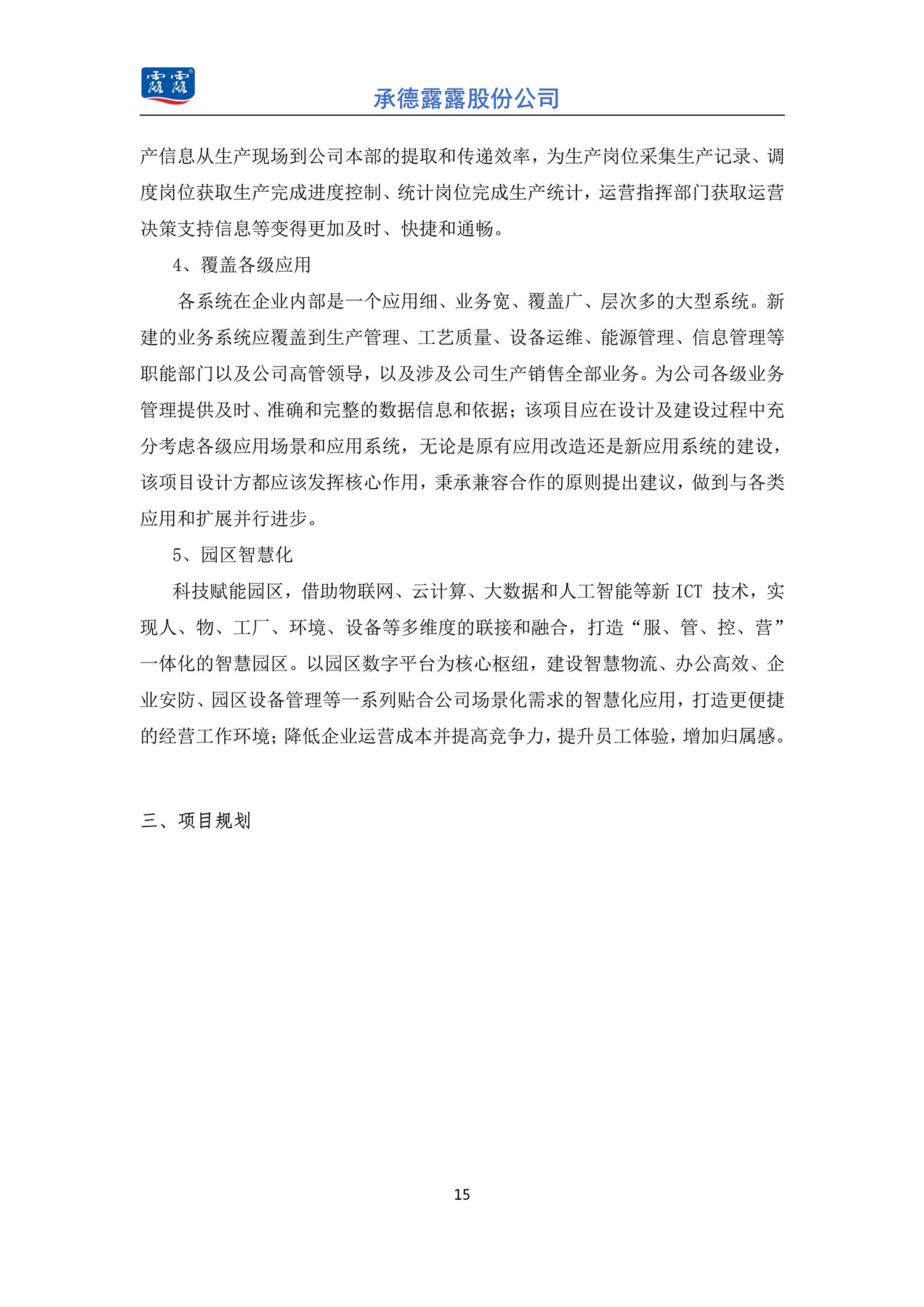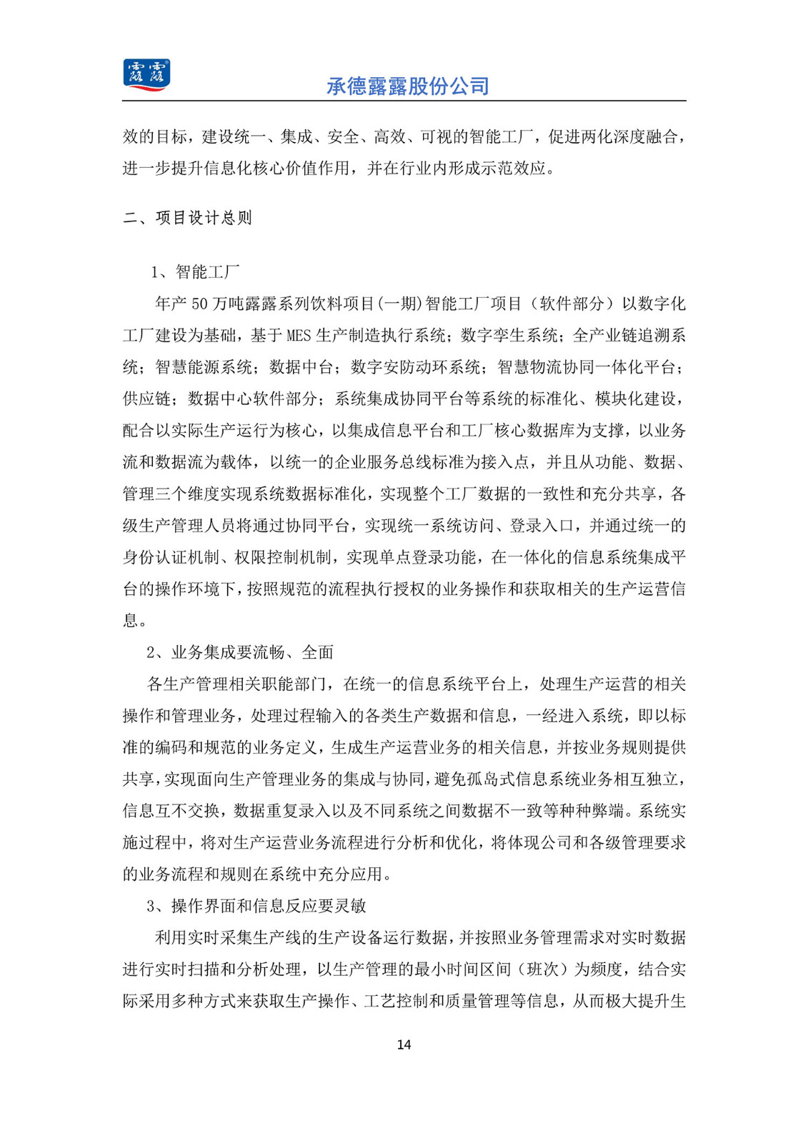 BG视讯股份公司年产50万吨露露系列饮料项目(一期) 智能工厂项目(软件部分)