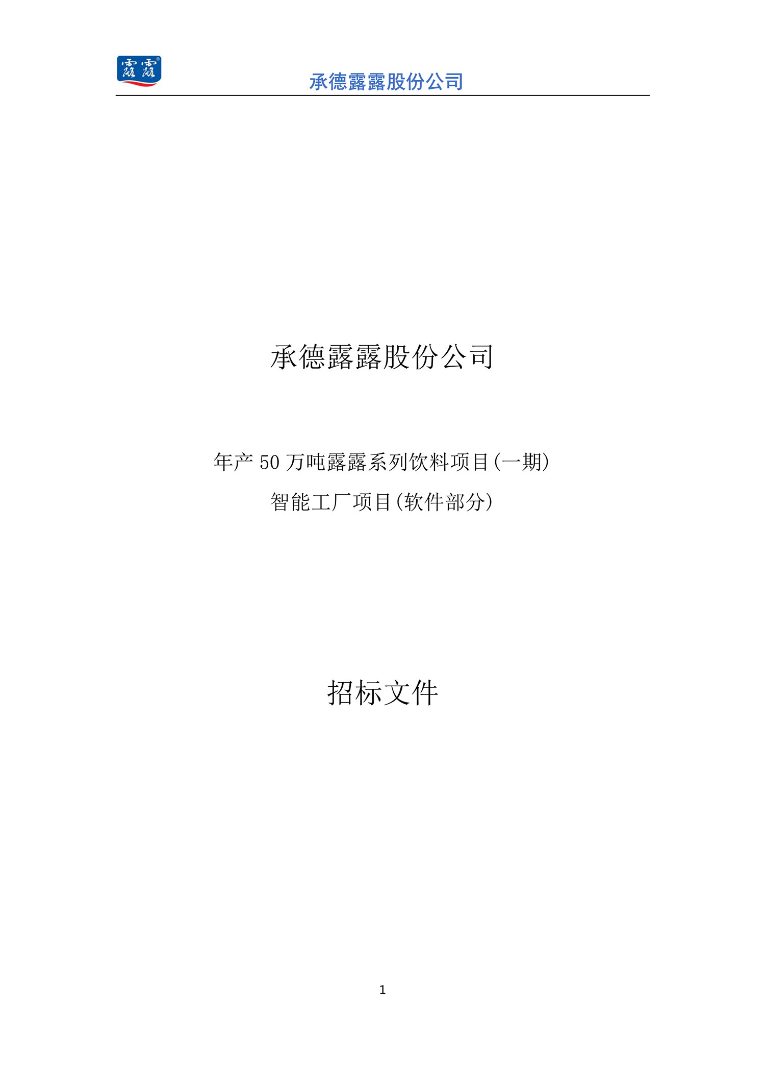 BG视讯股份公司年产50万吨露露系列饮料项目(一期)智能工厂项目(软件部分)招标文件.docx