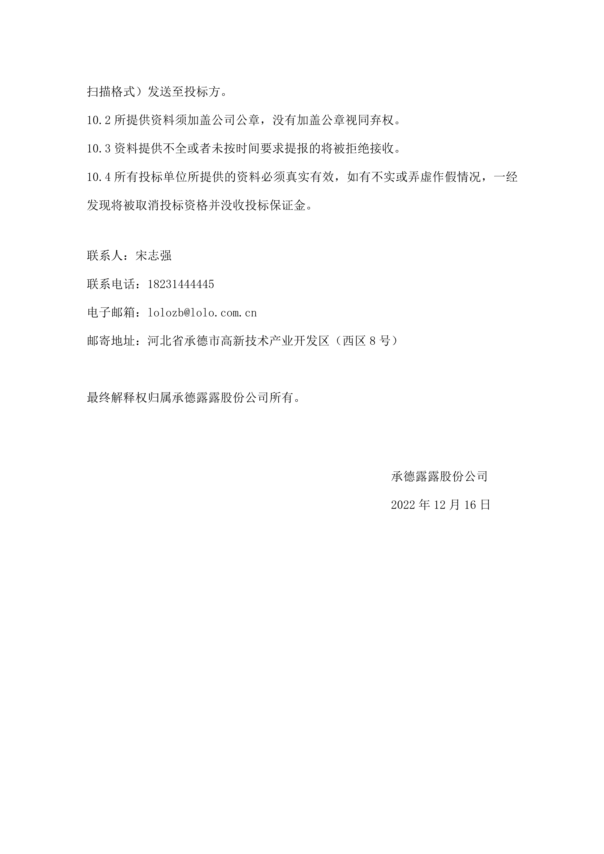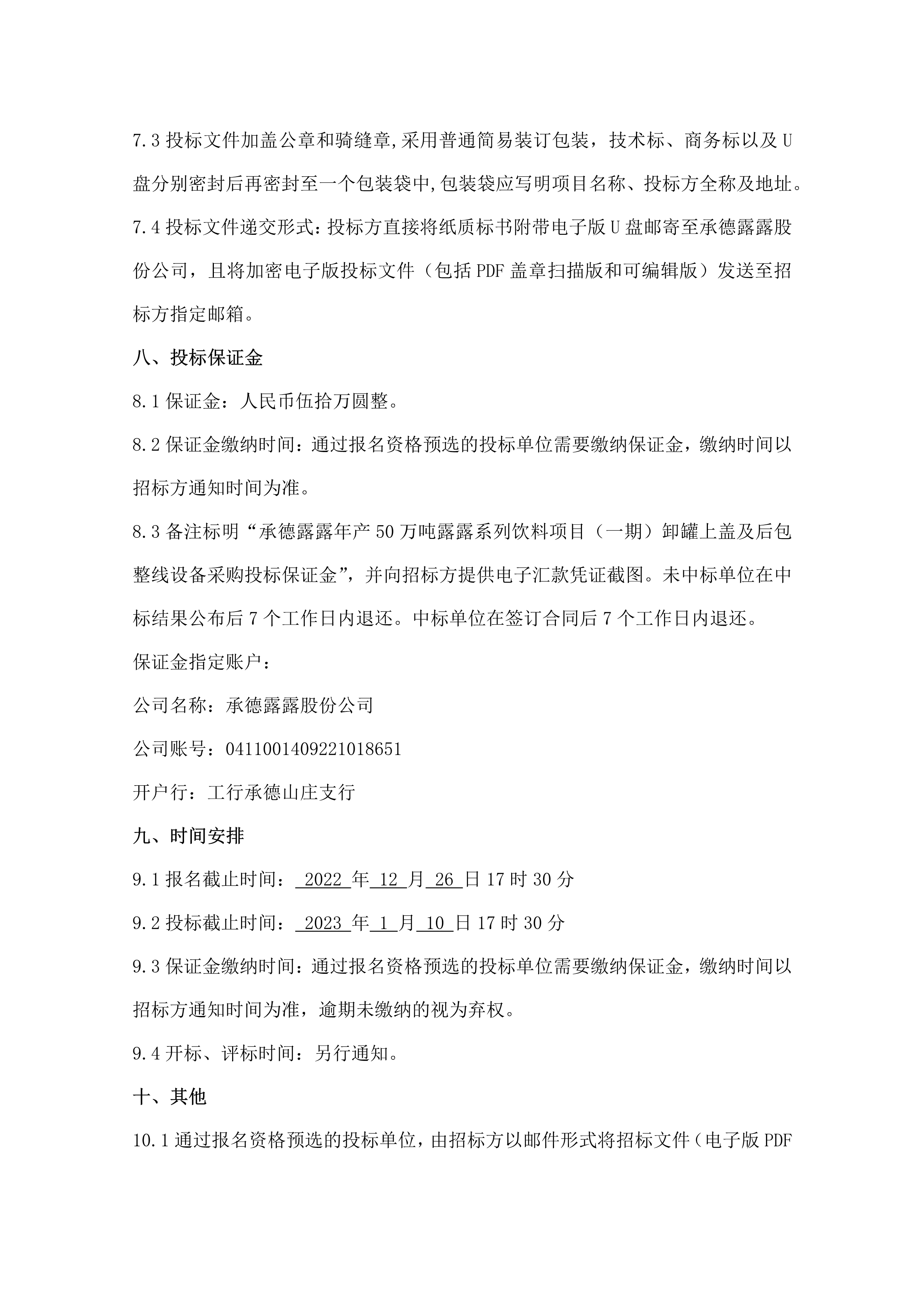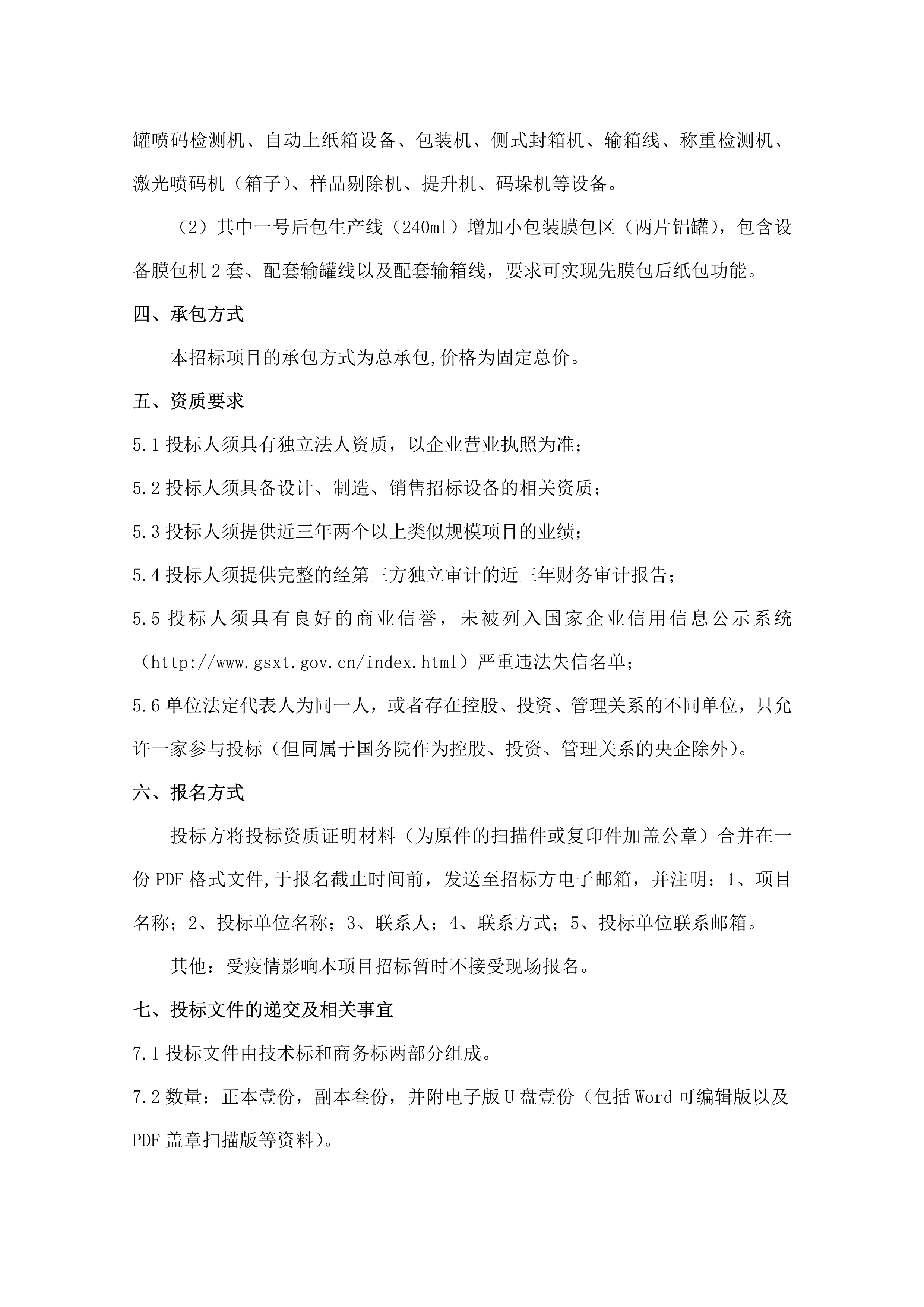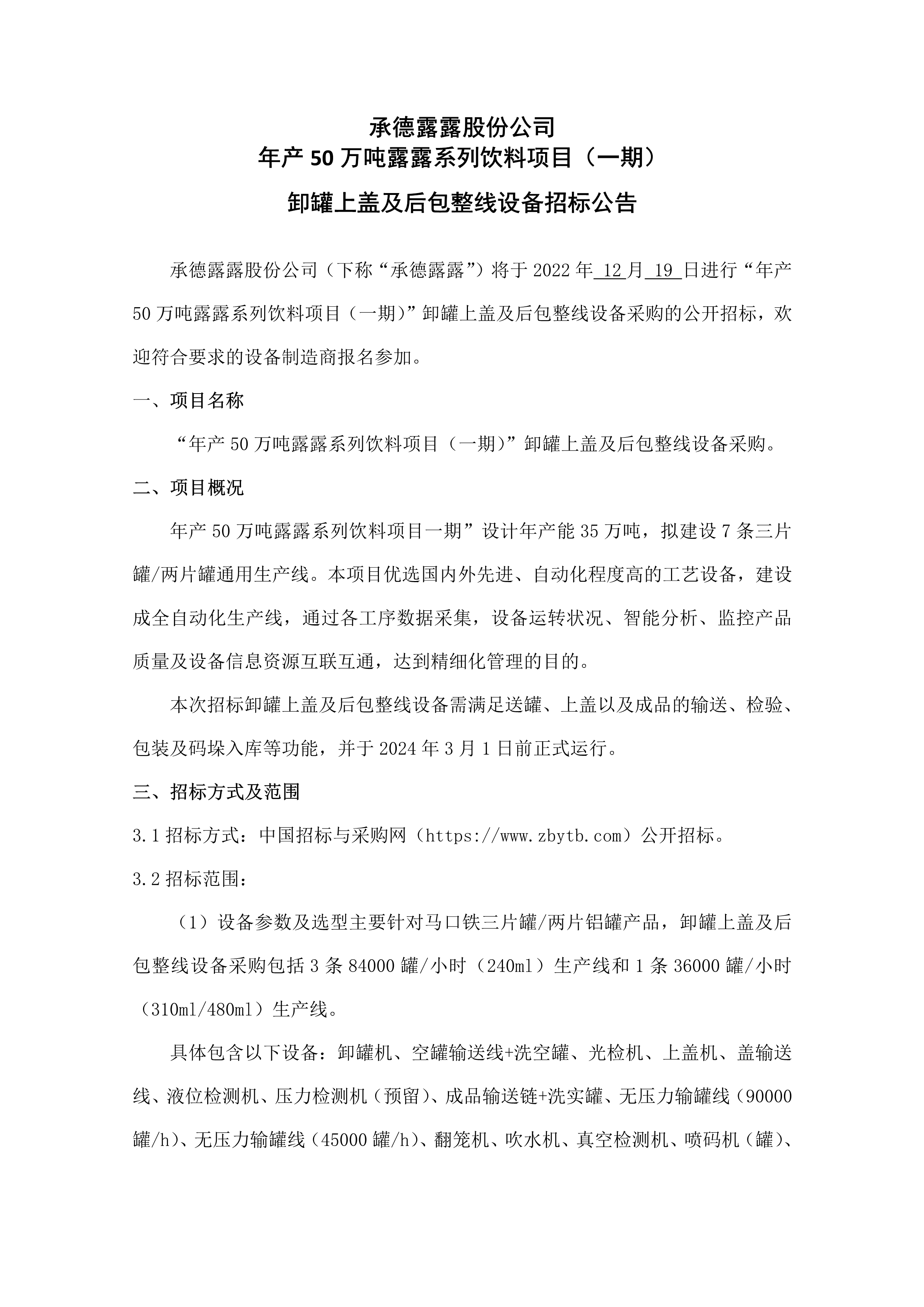 BG视讯股份公司 年产 50 万吨露露系列饮料项目(一期) 卸罐上盖及后包整线设备招标公告