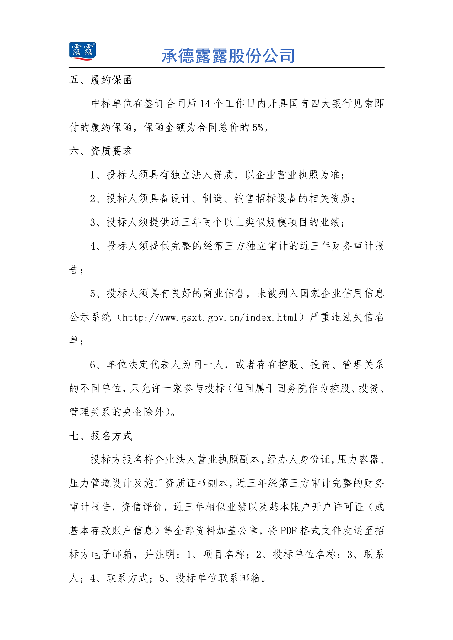 BG视讯股份公司 年产 50 万吨露露系列饮料项目(一期) 卸罐上盖及后包整线设备招标公告