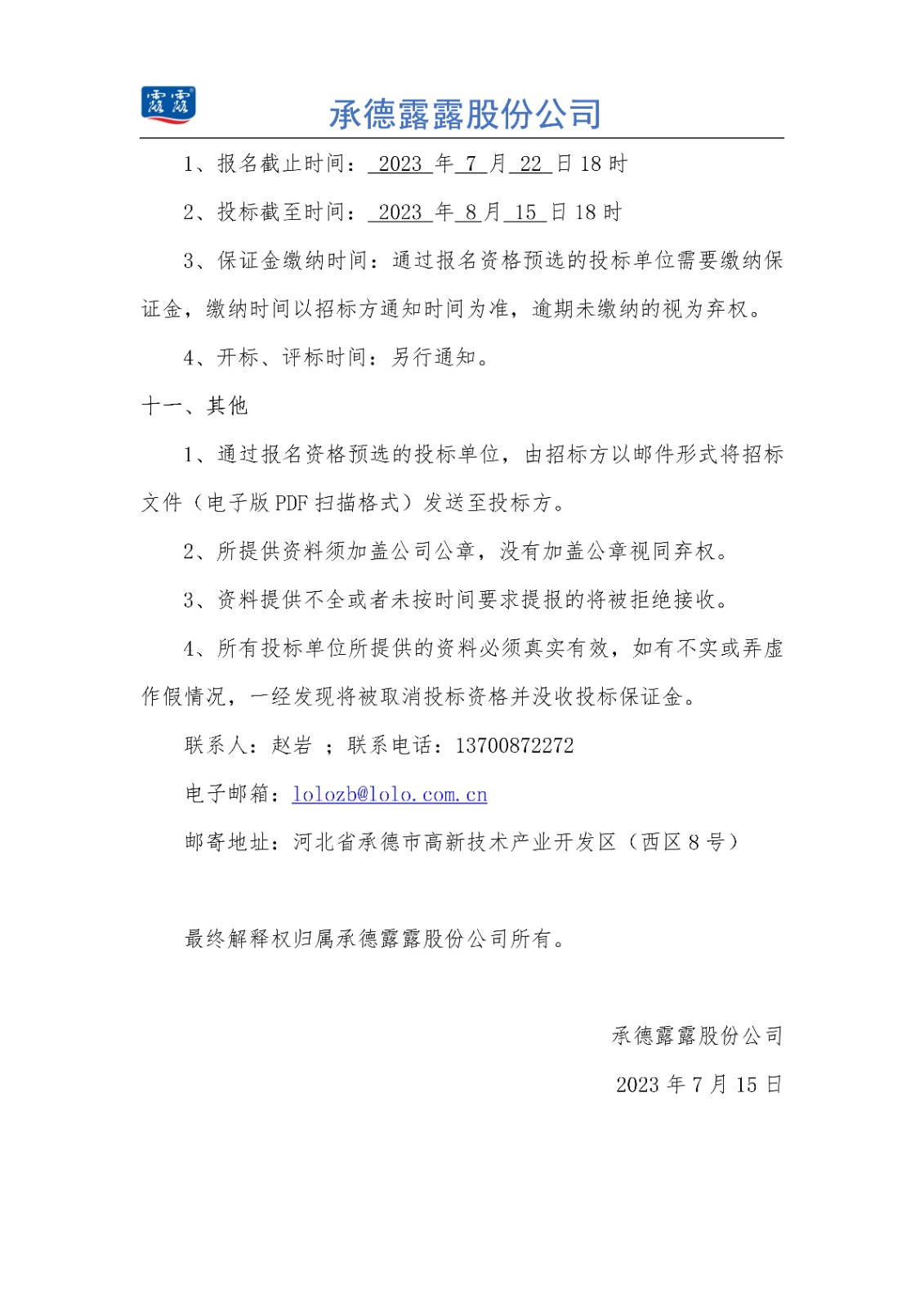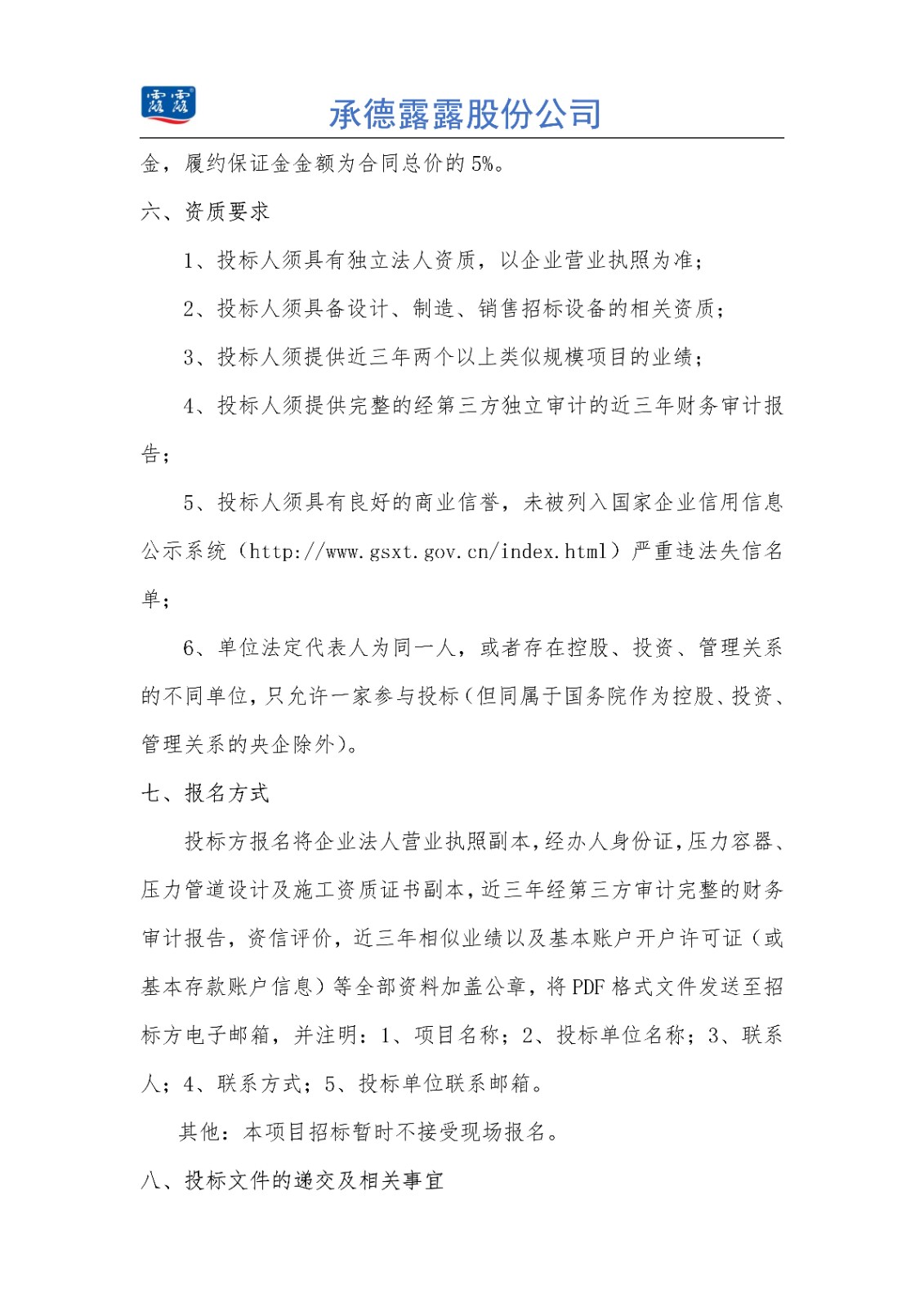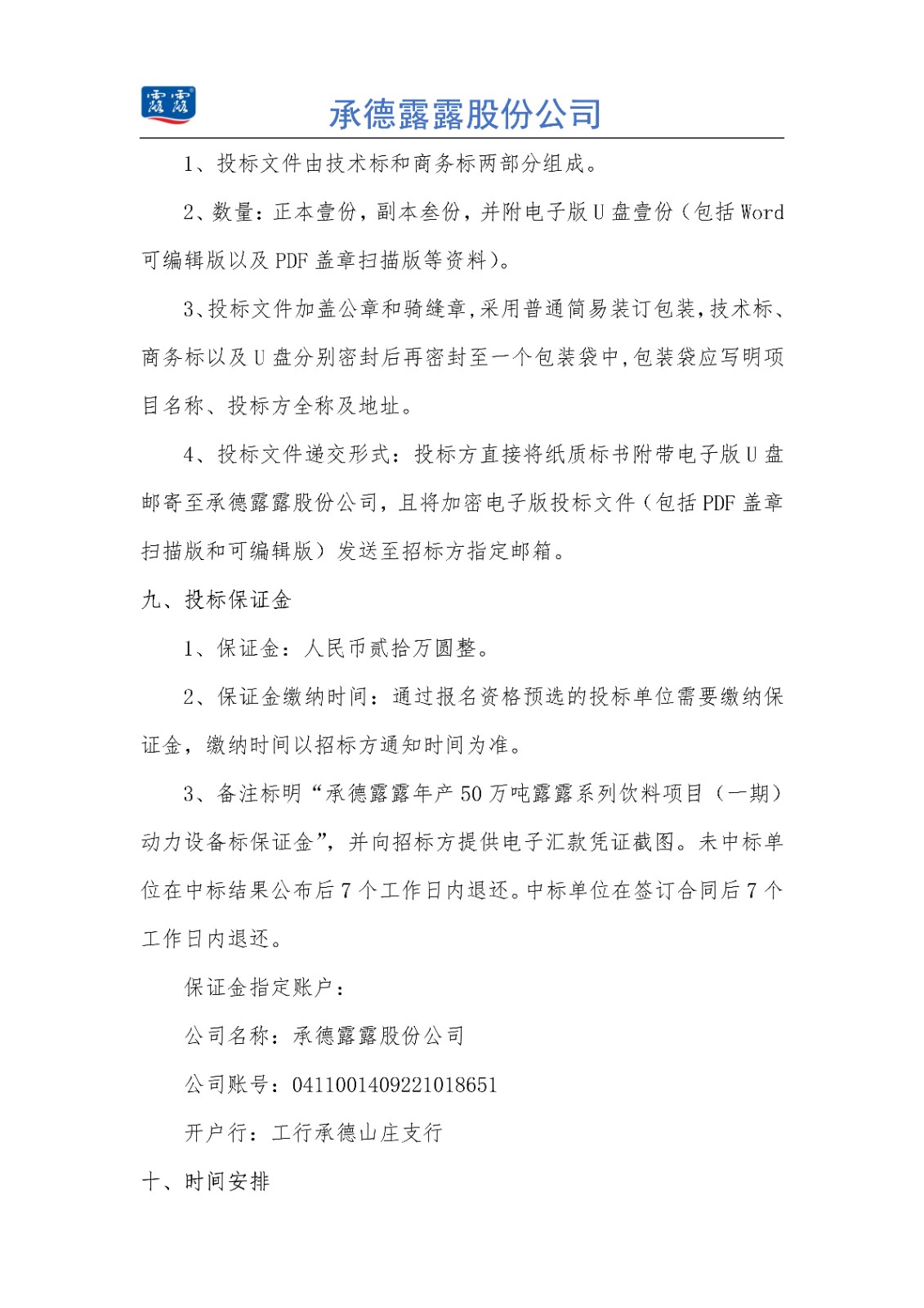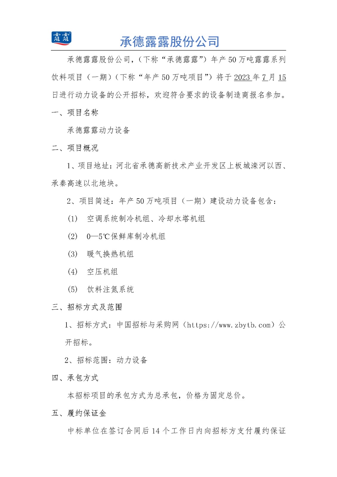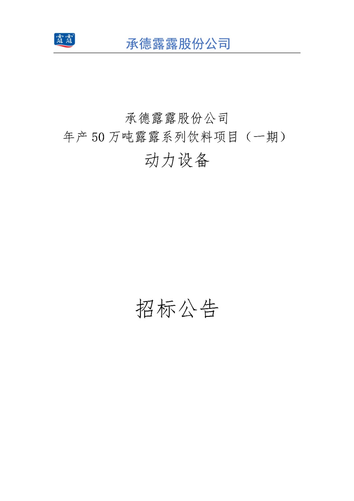 BG视讯股份公司 年产 50 万吨露露系列饮料项目(一期) 动力设备招标公告